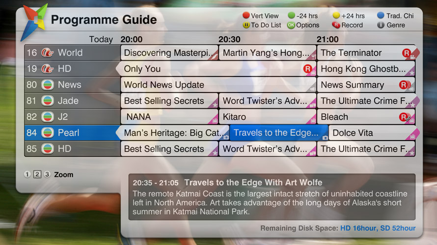 - 7-day HD EPG with Vertical and Horizontal layout options